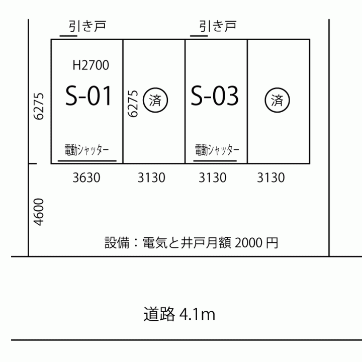 柏市逆井 ガレージ倉庫【S-01】・【S-03】 ☆電動シャッター 人感センサーライト 温度センサー換気扇 防犯カメラ☆ ガレージ倉庫【S-01】賃料 66,000円 ※別途管理費2,000円